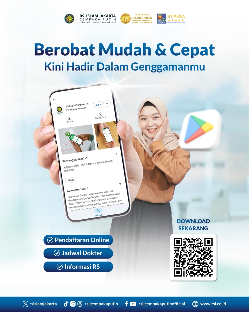 Scan QR Code di atas atau cari “RS Islam Cempaka Putih” di Play Store.