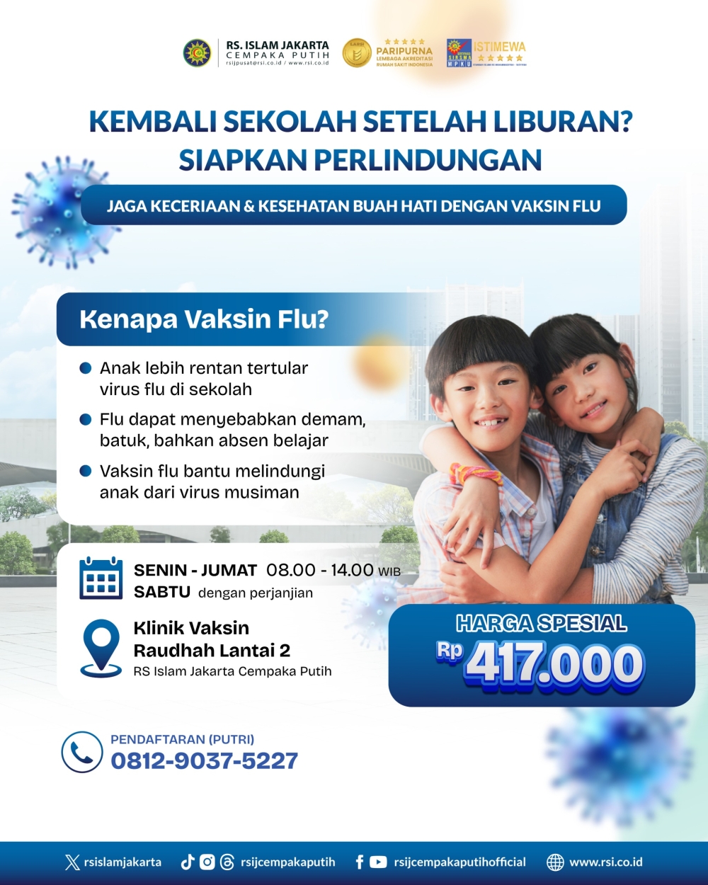 Lindungi si kecil dari virus flu yang mudah menyebar di lingkungan sekolah.