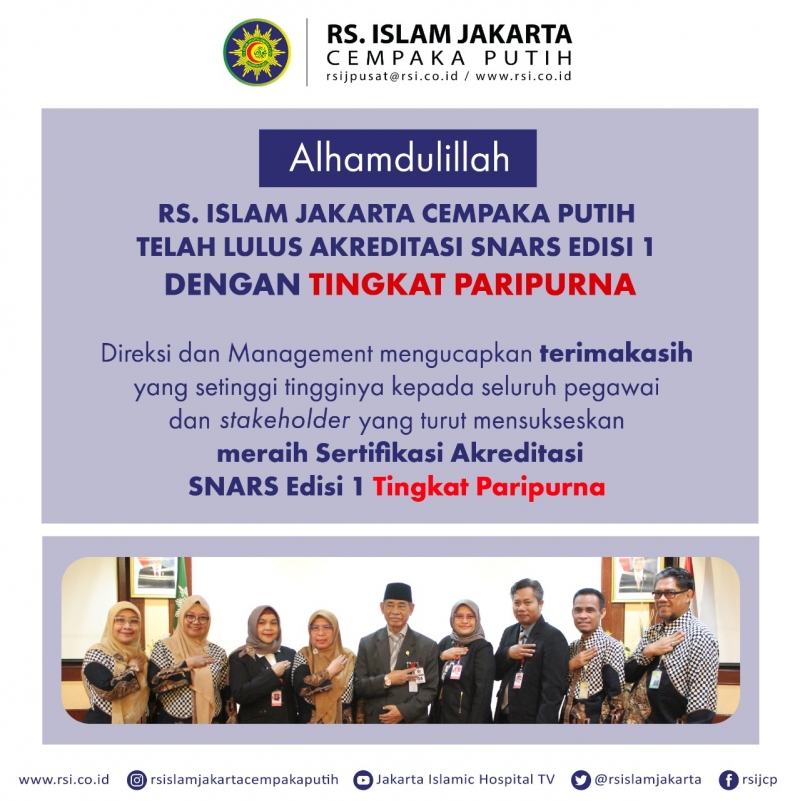 RS. Islam Jakarta Cempaka Putih telah Lulus Akreditasi SNARS edisi 1 dengan Predikat Tingkat Paripurna